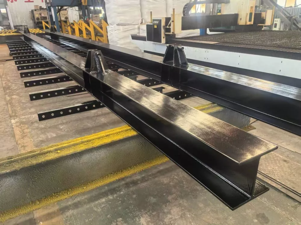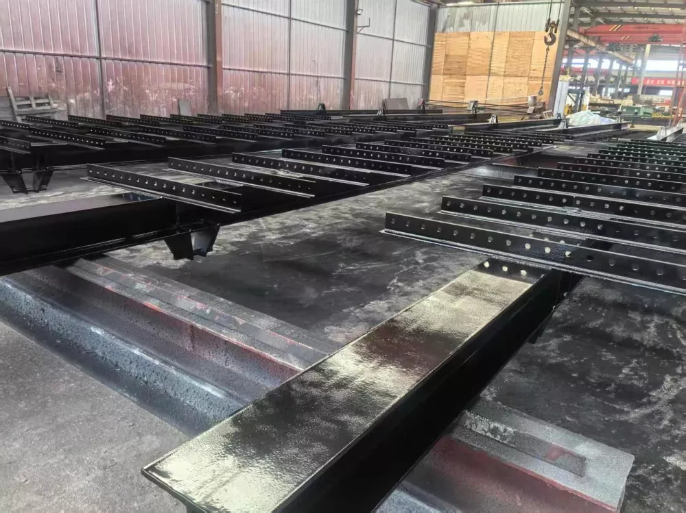 Екі көтергіш нүктелі порталдың кадр құрылымы, реттелетін негізгі сәуле ұзындығы 11,5 м. 80 * 80Q355B Бұрыштық болат құрал көтеретін түйіндерде қолданылады, түйіндерде 16 мм қалың арматураланған қабырғалары қосылған.